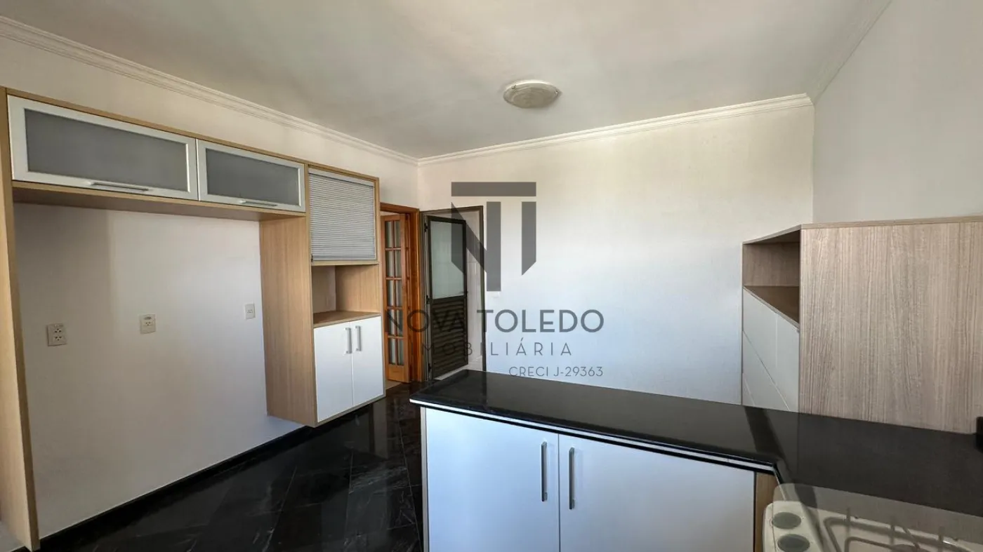 - Ampla cozinha com armários planejados, balcão em granito preto, fogão embutido de 4 bocas