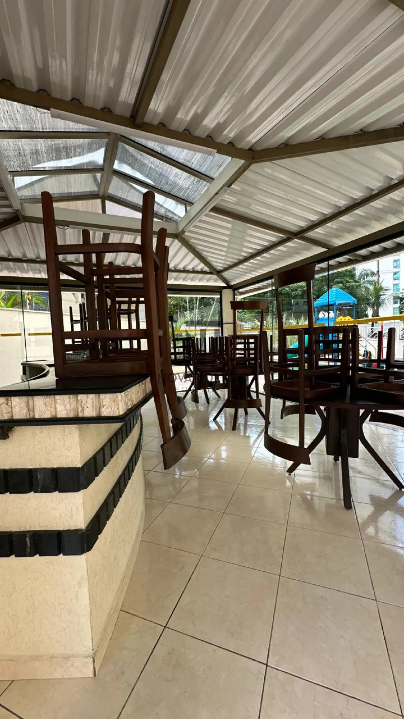 - Varanda gourmet com fechamento em vidro blindex e integrada com a cozinha