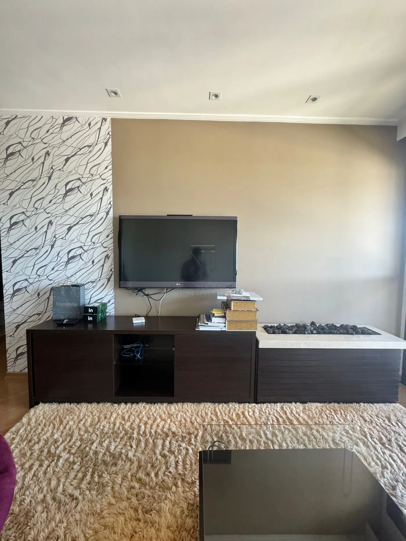 - Ampla sala 2 ambientes com painel de tv, lareira e ar condicionado.