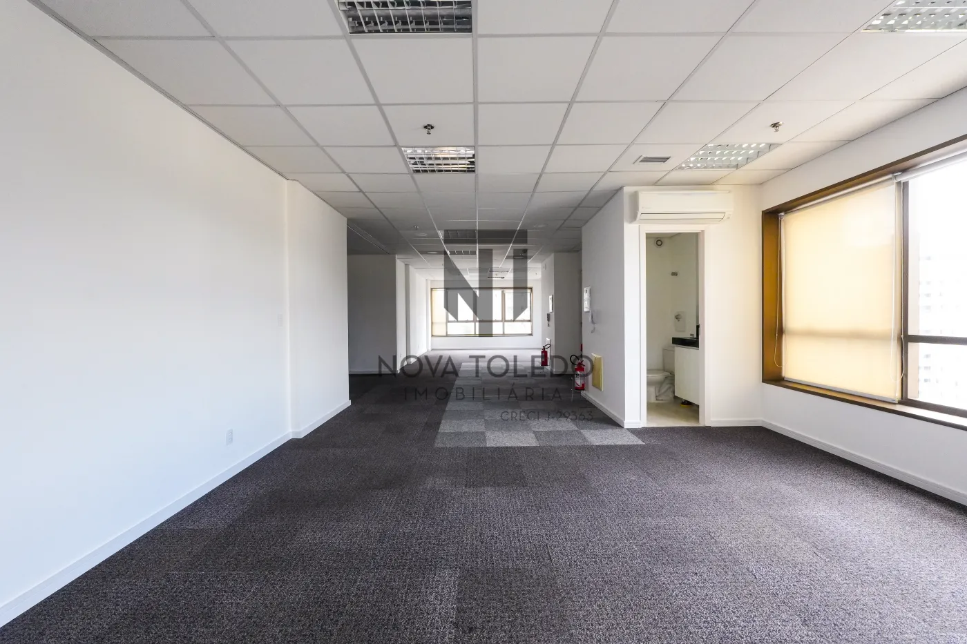 Ambientes amplos e integrados - duas salas comerciais conjugadas, totalizando 95m²