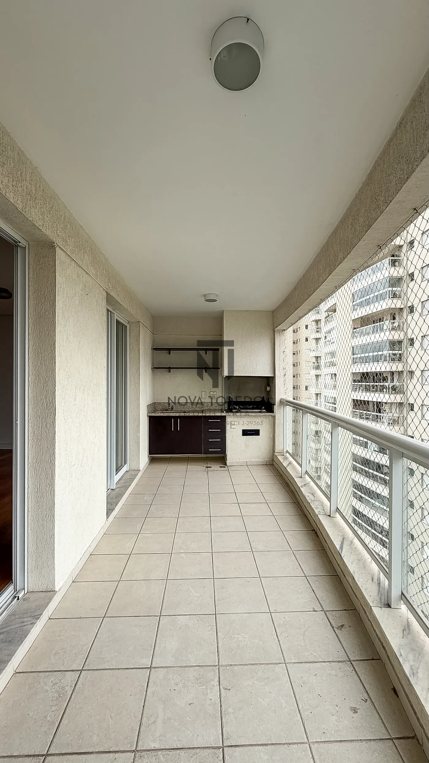 Sacada gourmet com churrasqueira e vista livre