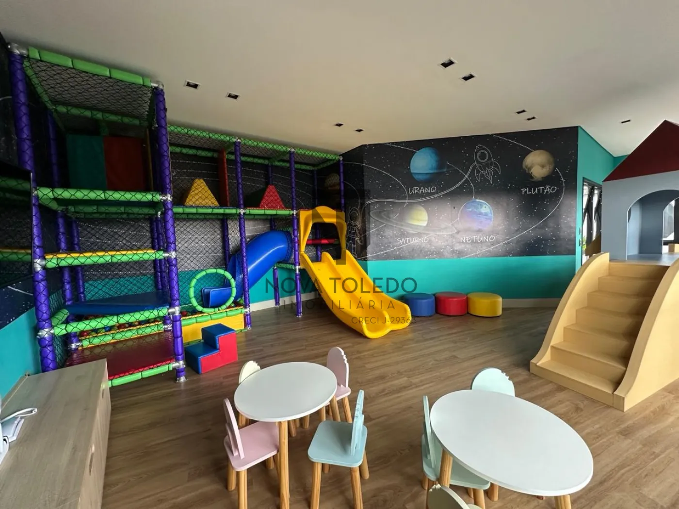 - Complexo aquático piscina adulto e infantil, espaço para biribol, tobogã e escorregador infantil