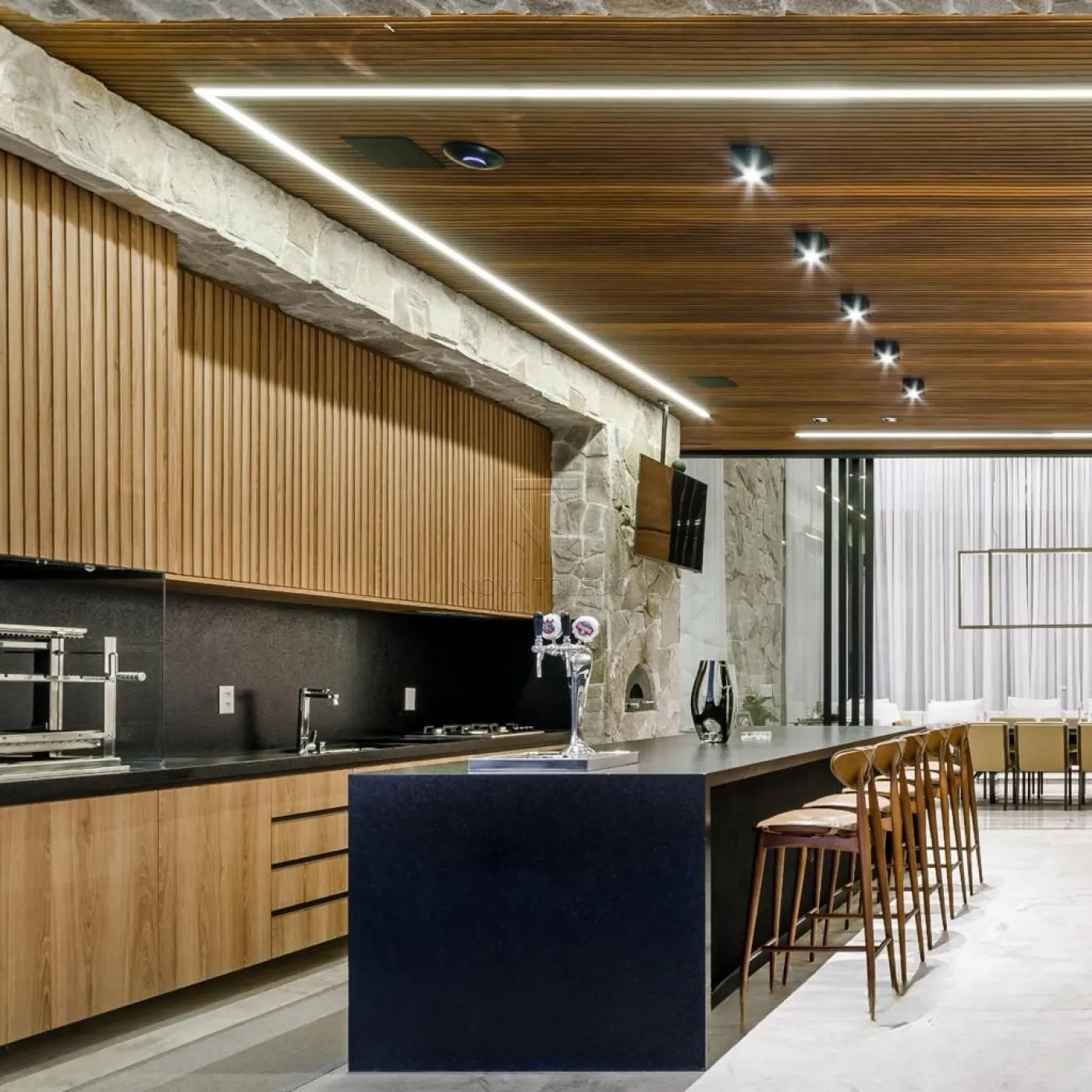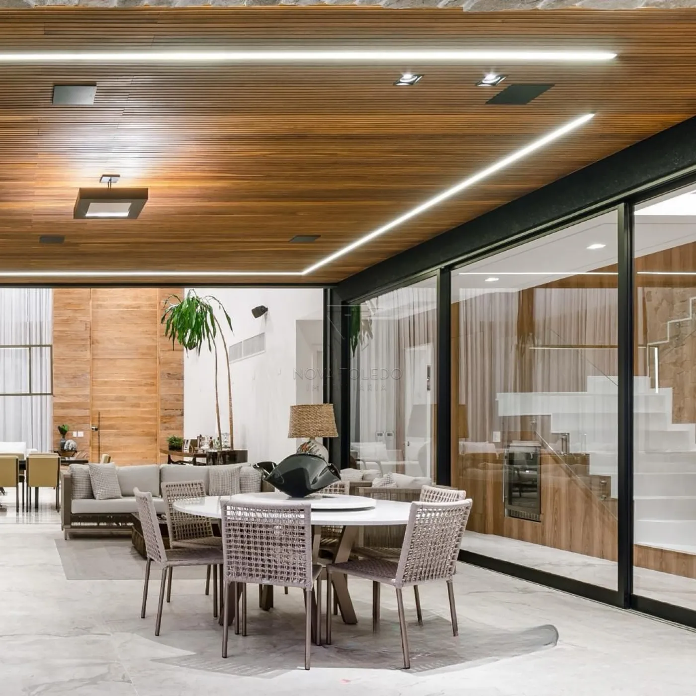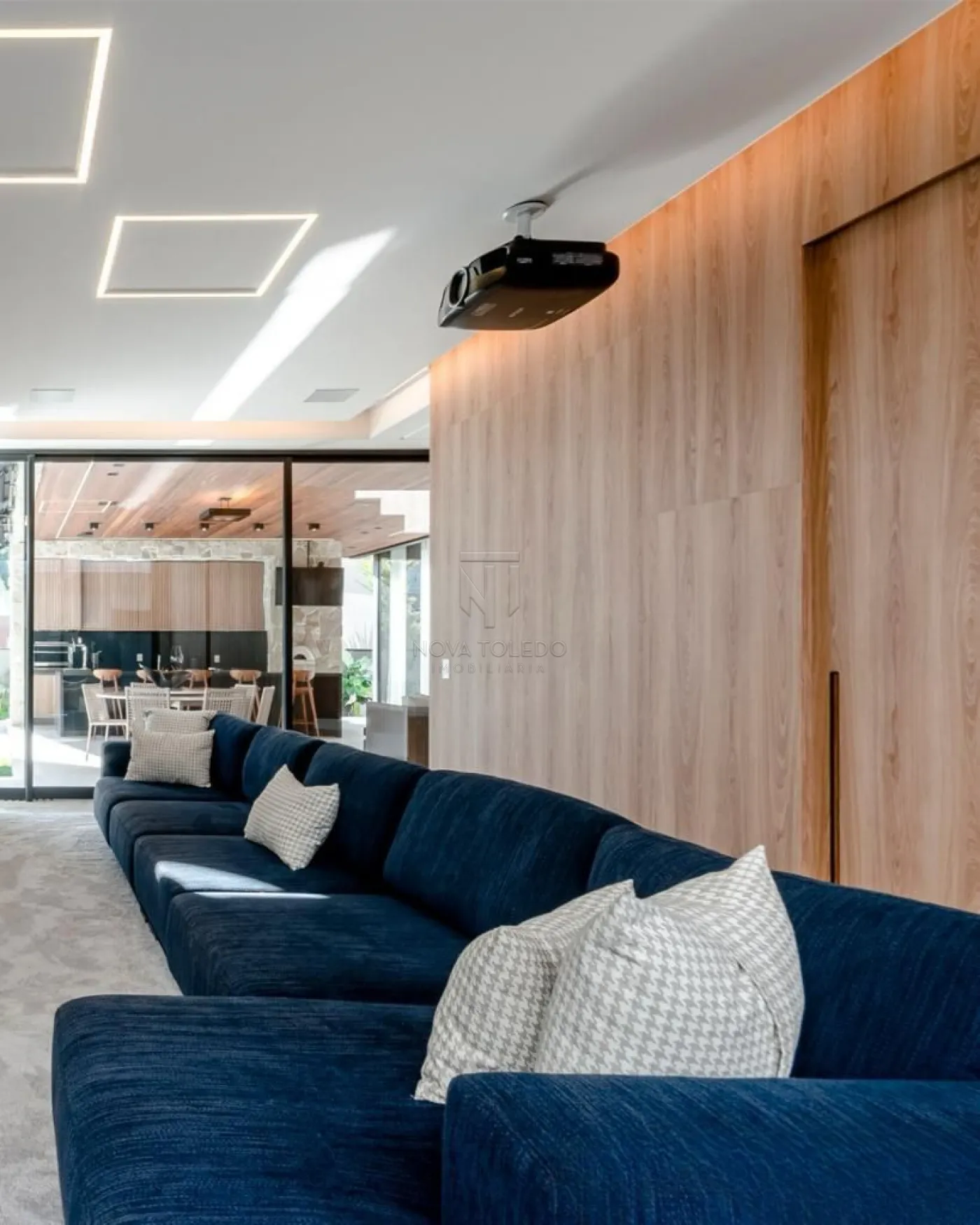 - Iluminação automatizada na sala de estar, jantar, área gourmet, cozinha e sala de tv