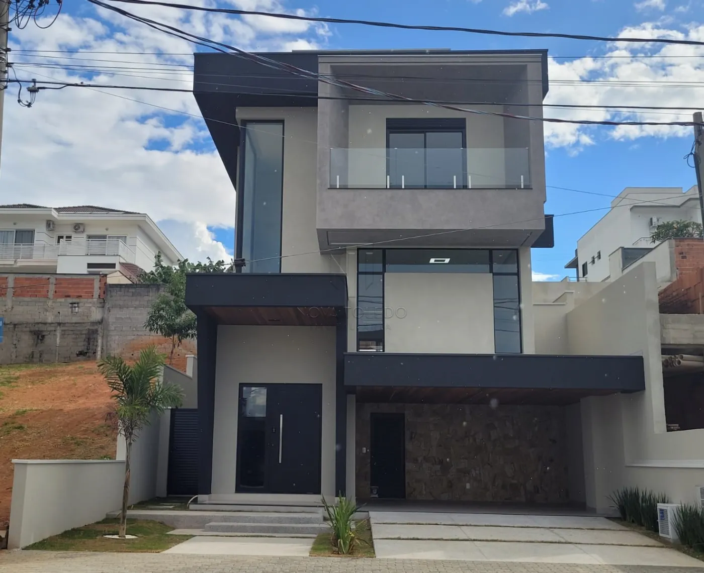 - 4 suítes sendo 3 no piso superior e 1 no inferior podendo ser convertida em escritório