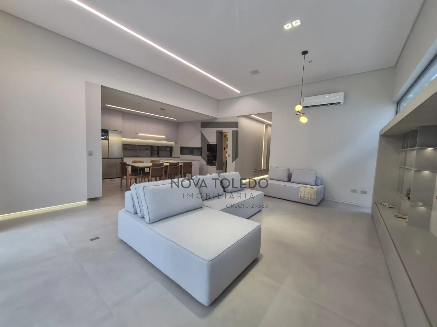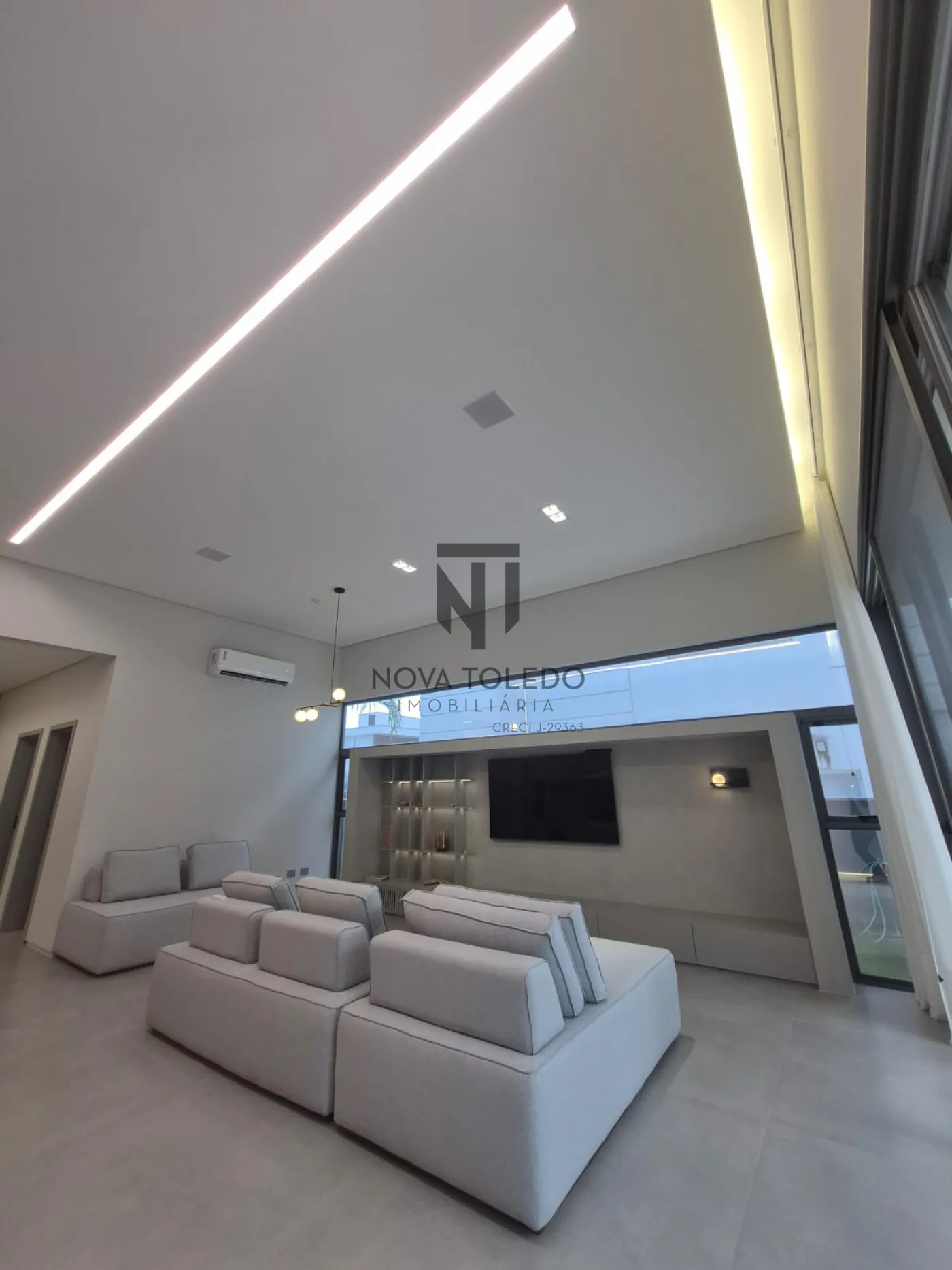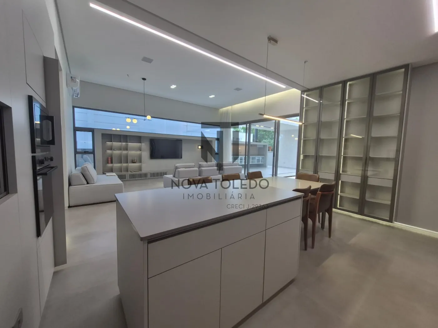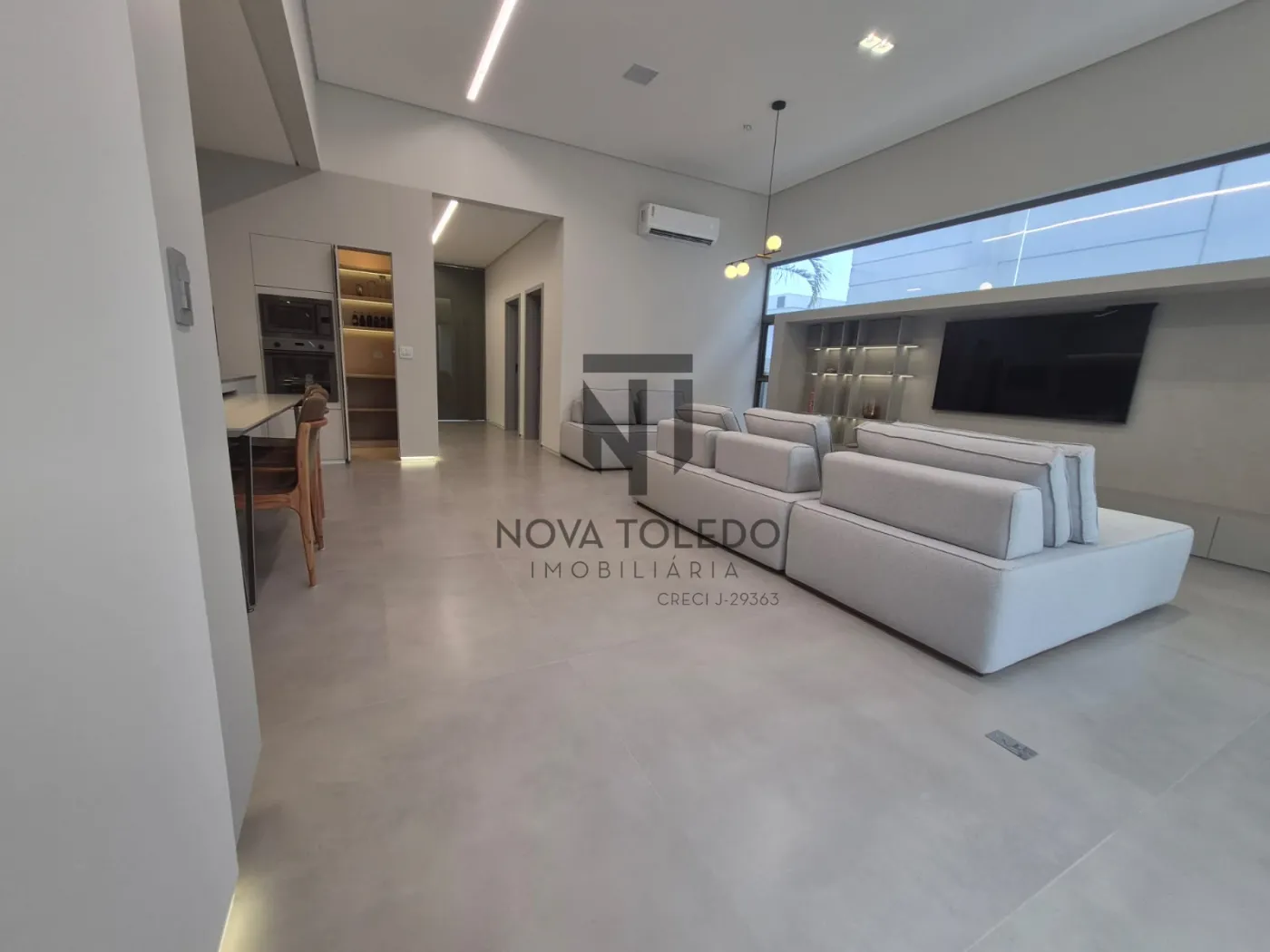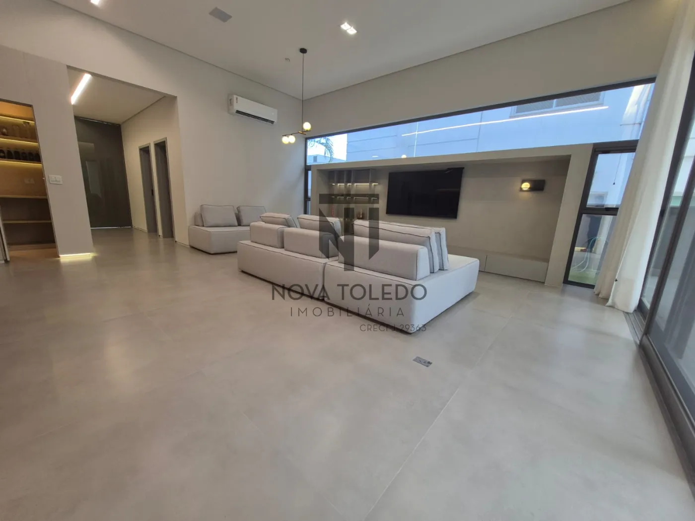 - Sala ampla com TV 75 polegadas, vista para área gourmet