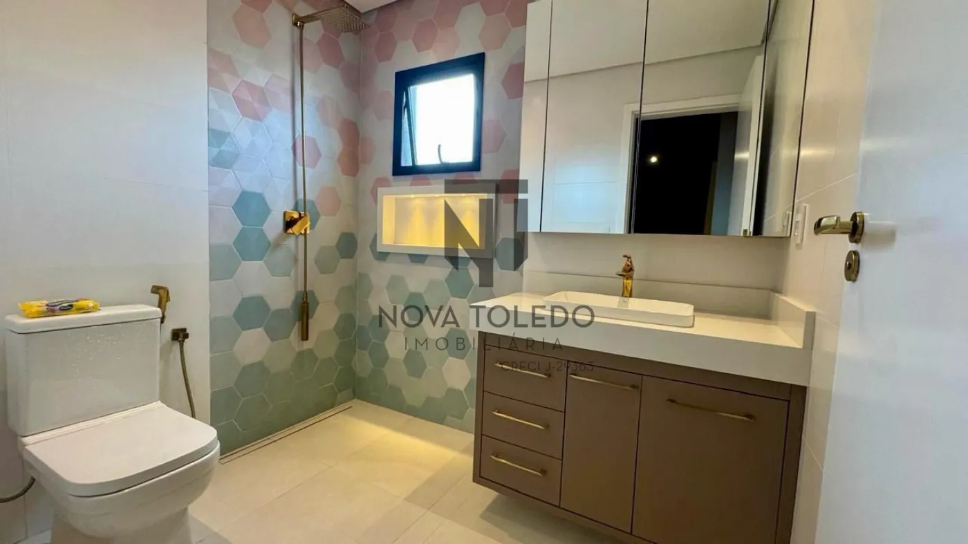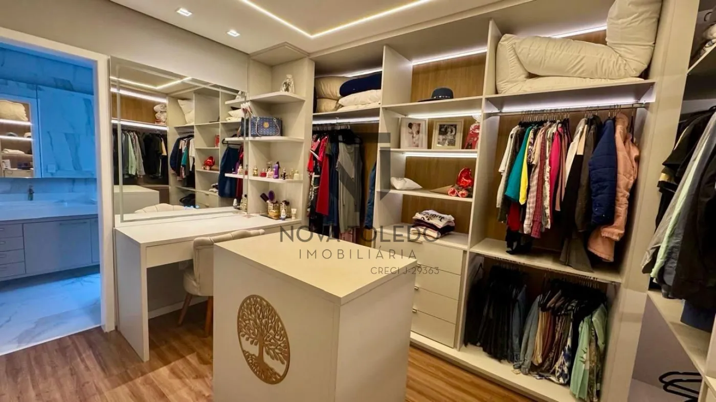 - Suíte master exclusiva, com closet e banheiro amplo, equipado com 2 chuveiros, 2 pias e banco em quartzo dentro do box, garantindo luxo e funcionalidade.