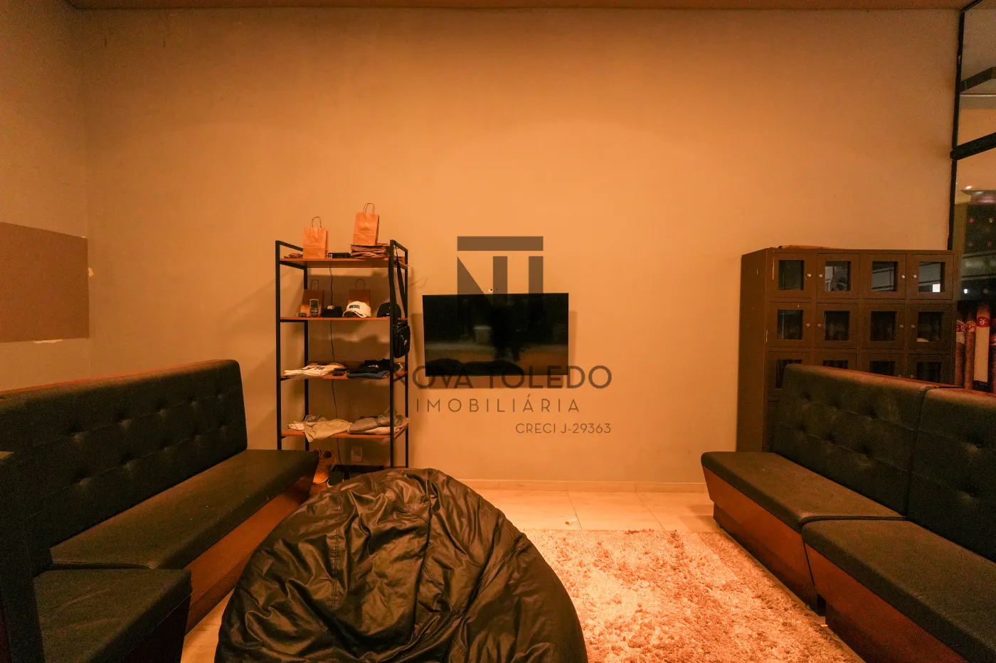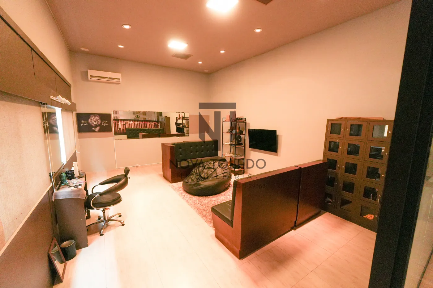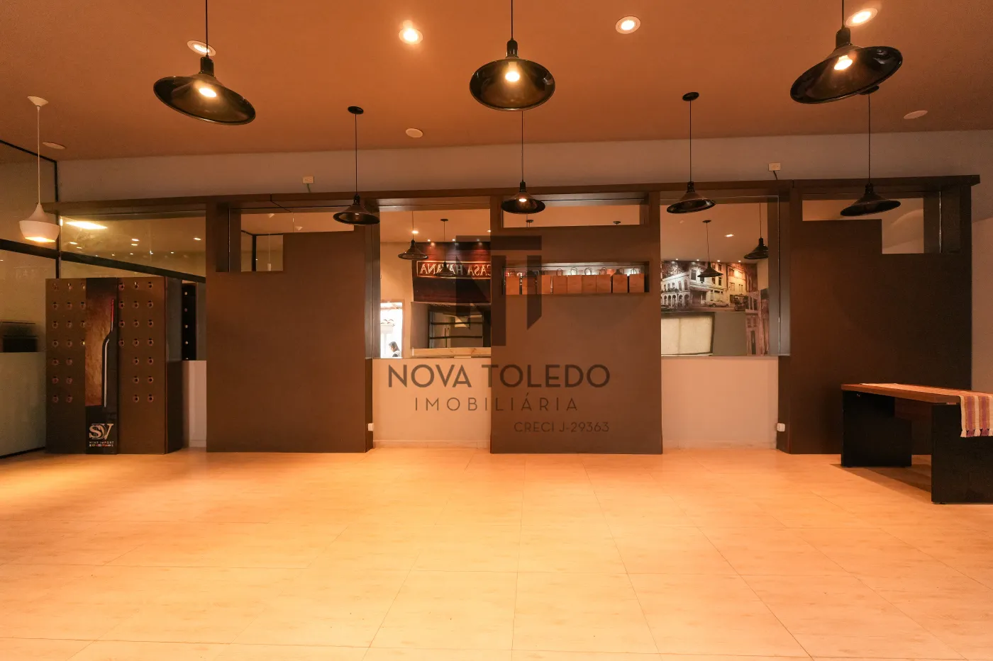 Salão grande (100 m²) com pé-direito adequado e compartimentos bem planejados.