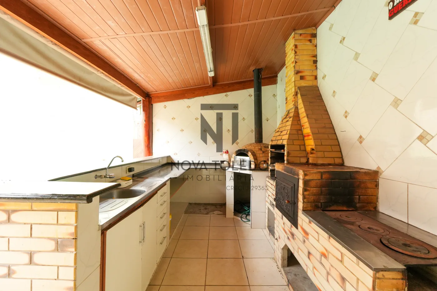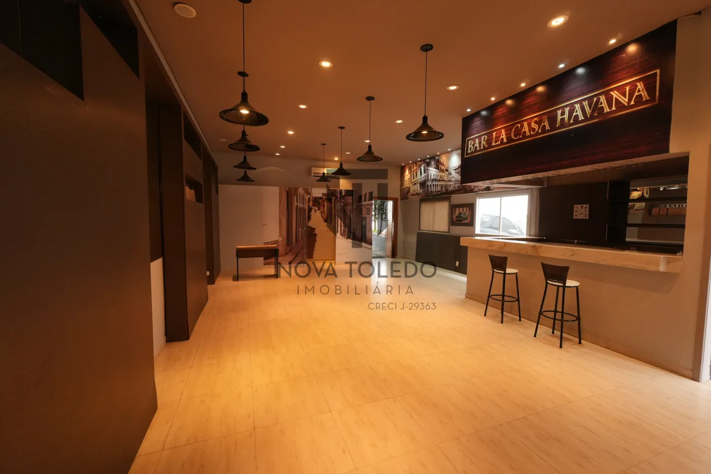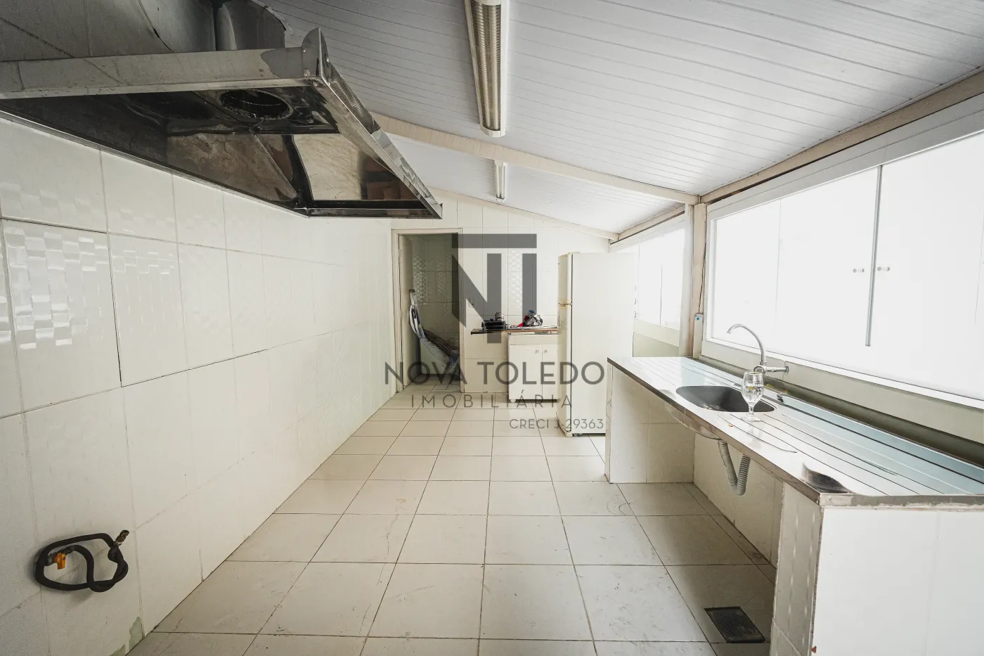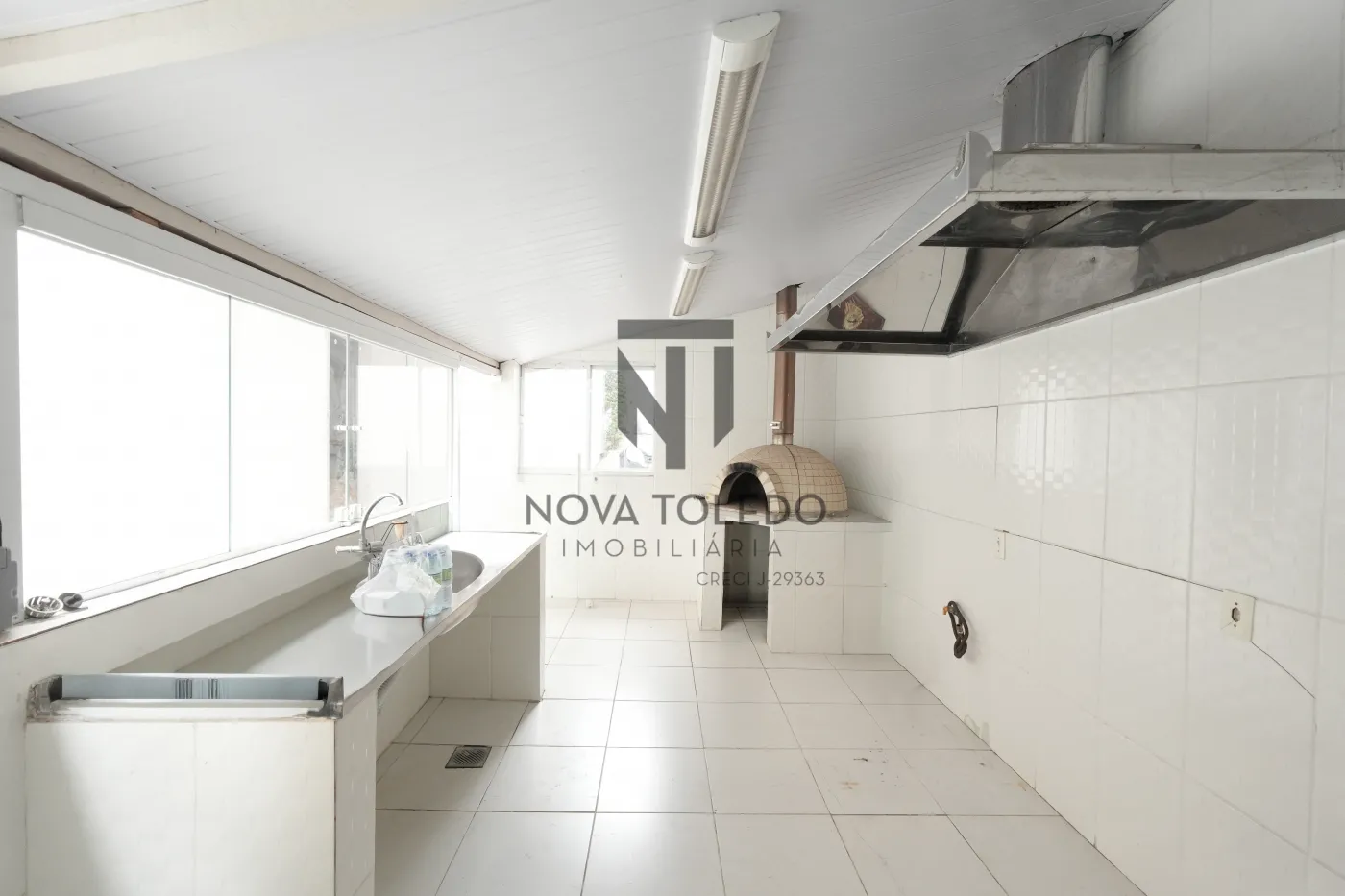 No pavimento comercial: há salão com 100 m² de área útil, mais cozinha industrial equipada com forno de pizza, coifa e infraestrutura robusta - preparado para gastronomia ou atividades de grande demanda.