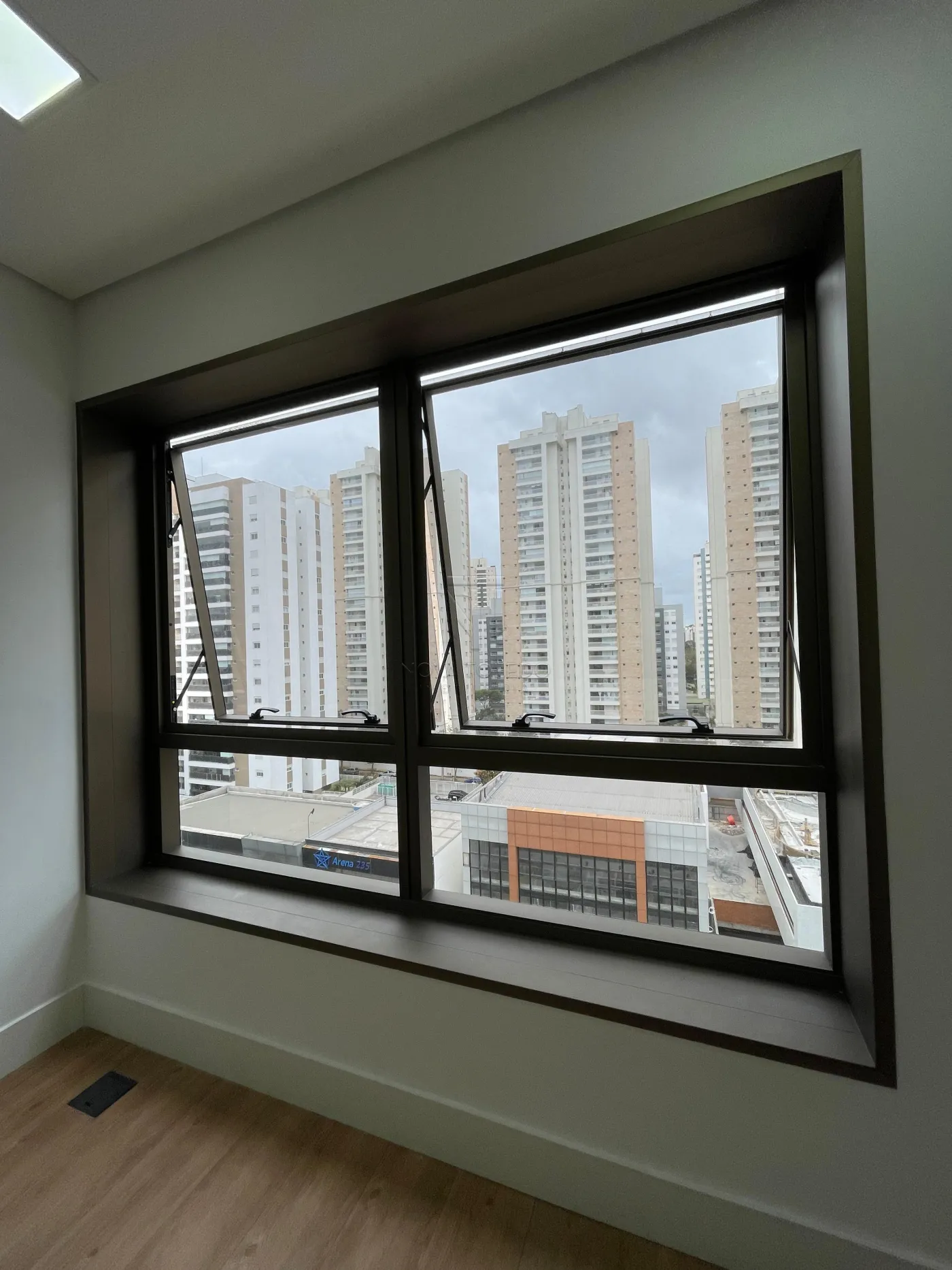 37m², 1 vaga de garagem, andar alto, vista boa para o dia a dia, 1 WC com pia em granito, área técnica espaçosa, piso elevado com acabamento em vinílico e dois aparelhos de ar condicionado!