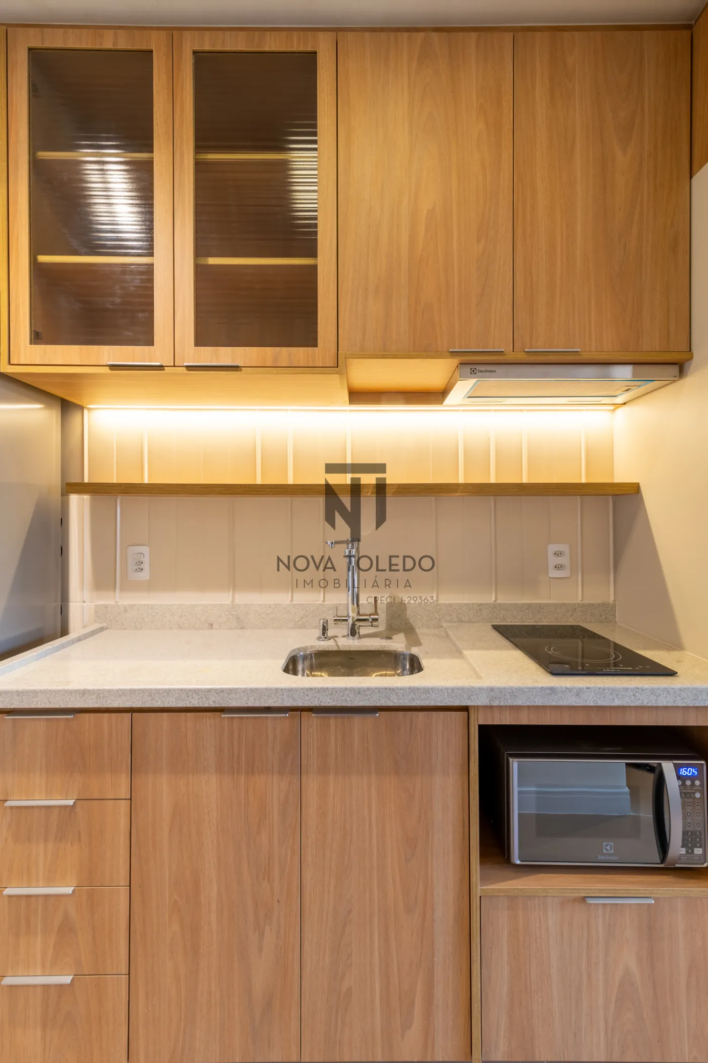 - Cozinha completa e espaçosa rica em armários equipada com Geladeira Eletrolux Grande , fogão cocktop de duas bocas , máquina de café elétrica, micro-ondas, liquidificador , Chaleira elétrica, sanduicheira e panelas e utensílios de qualidade.